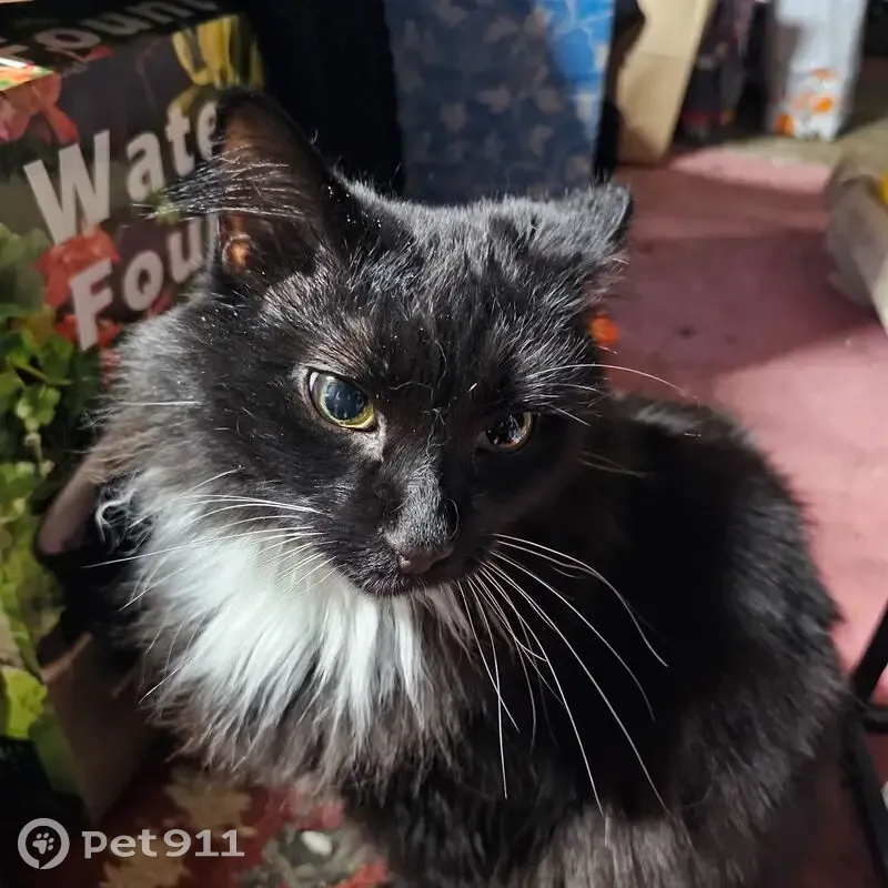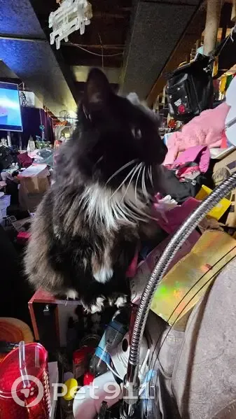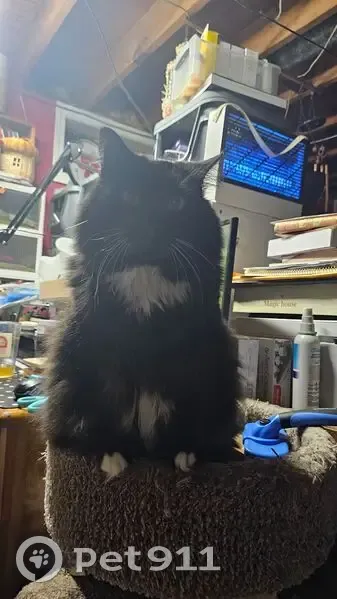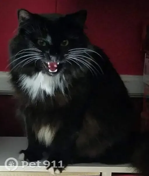 Long black coat, white tuff on chest and belly, white toe tips and whiskers. Sweet temperament. Glass blew out of basement window and she broke the screen. She loves Churu tubes and temptations treats. And the song from the YouTube video String Thing usually brings her running. Indoor only. 9 years old. Never been outside out of a crate.
