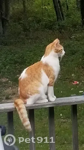 Partial Orange Tabby- all white belly, legs & feet (tabby elbows) Neutered Male 5yr old approx 15lbs NOT DECLAWED NO CHIP NO COLLAR Poppy managed to push a window open in a moving camper on 10/2 somewhere near Crosby, MN. Only four, un-confirmed, sightings from near Isle back to Cuyuna. Last one on 11/6 near Bridge Tavern/Co Rd 30.
