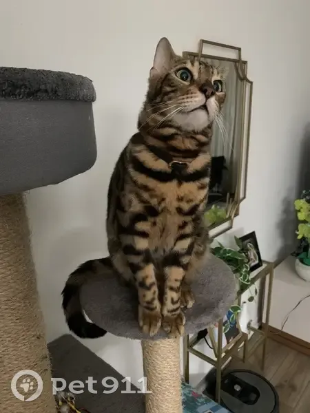 Bengal,yellow with brown spots My neighbor has a cat trap on his backyard and he is catching all cats who appears in this area He said he bring the cat to Human society Please check all this adoption places I can’t find my cat! Thank you so much!