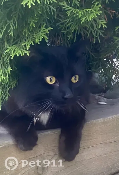 99% black, white spot at his chest, small white spot on two of his paws. He is very friendly but a little skittish. He has microchip, he has pet license. Wearing a black collar with tag, he was also wearing an air tag. He is very much loved and missed and we want him home, we are very worried. Please help me find our fur baby