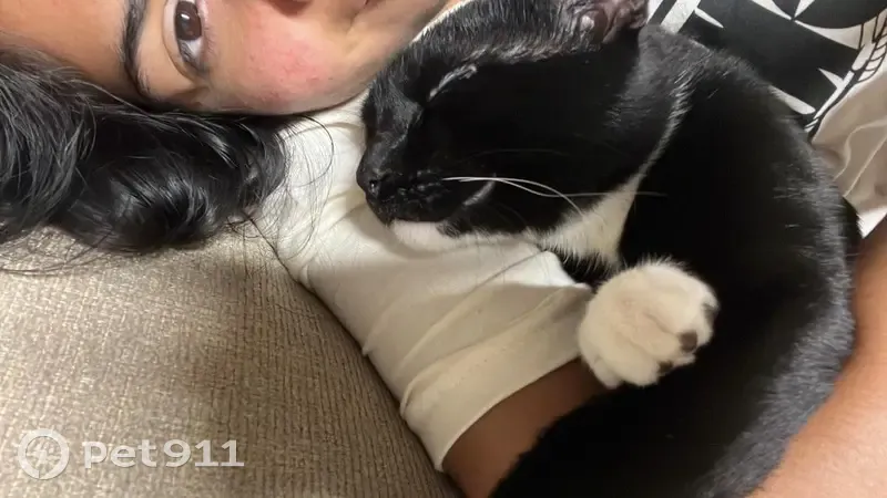Merged with usl525697 listing. The reason is duplication of information. Description of the duplicate listing: He's a black cat with a white chest and white paws, and he has green eyes. He's sometimes friendly with people, but not so much with other animals.