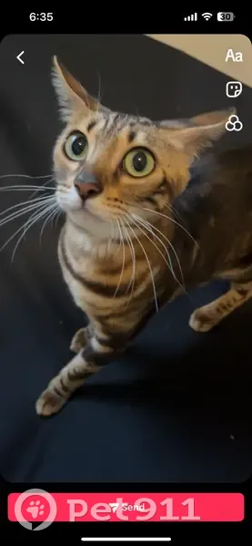 She’s not as big as most cats, she’s slightly smaller, and she’s skinny. She doesn’t like to be held and doesn’t like strangers, she’ll probably run if approached too close. She’s not an outdoor cat at all so I’m very worried about her especially in this cold weather. She must’ve escaped through the garage while we were being groceries in, we searched the neighborhood and saw a cat that looked very similar to her then we lost her, so she must still be in the area. We left some food and her blanket out for her so hopefully she picks up the scent