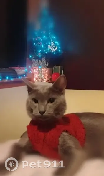Russian Blue he has a small white strip under his belly between back legs , he is an emotional support cat for me PTSD he is short hair yellow eyes 9 months old and chipped