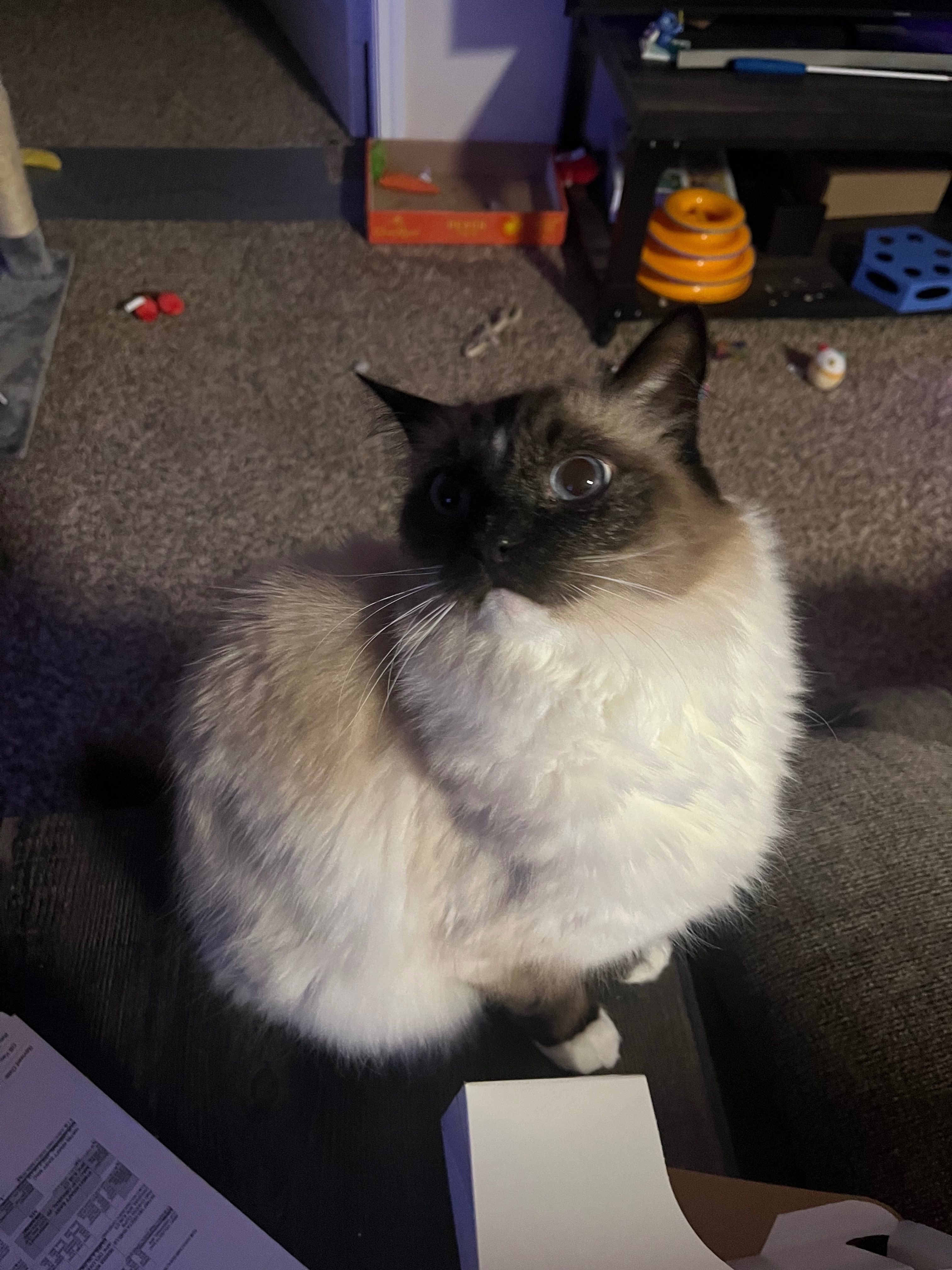 Soul slipped out of the house around 9am on the 11th he is a white is tan long haired cat with a darker face he has a little blue on his tail from accidentally getting in the wax a bit before he got out