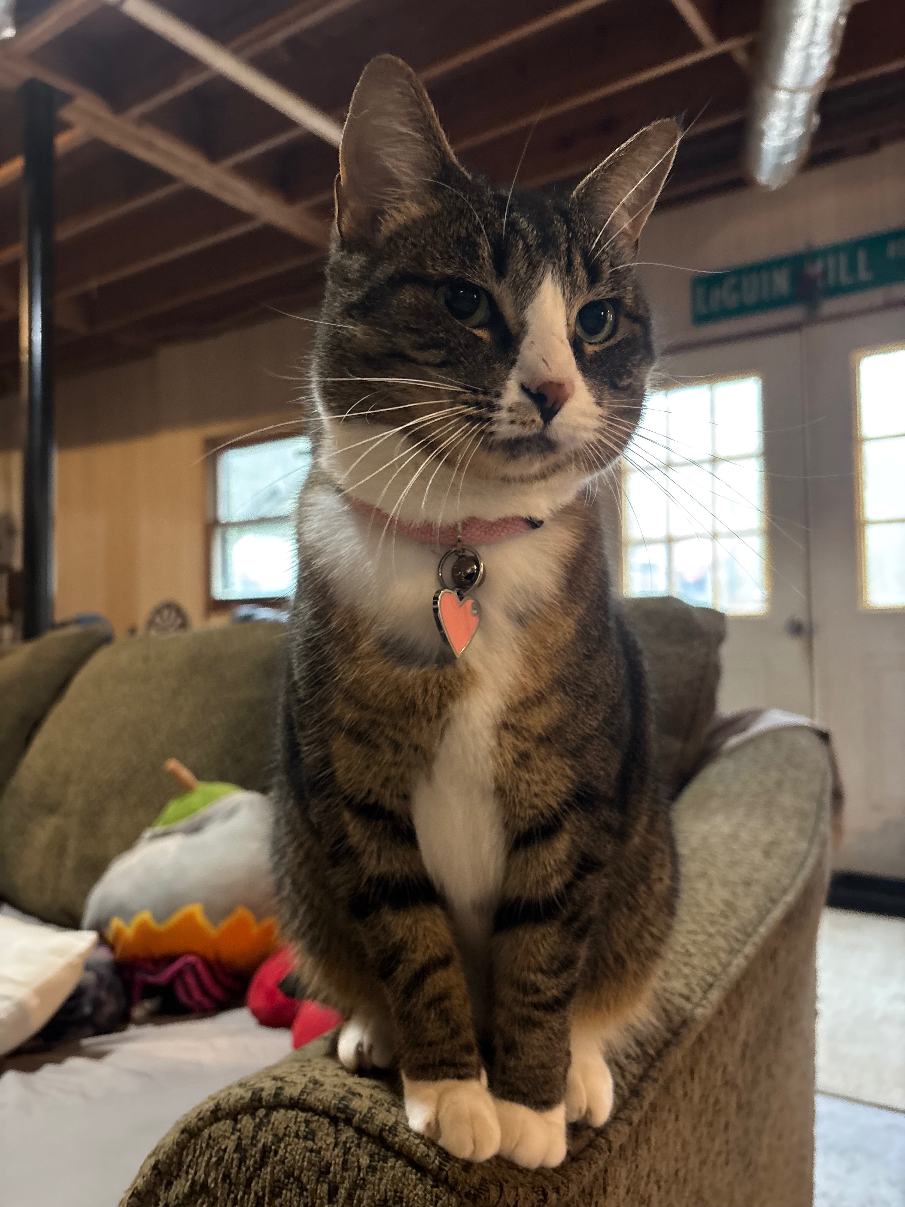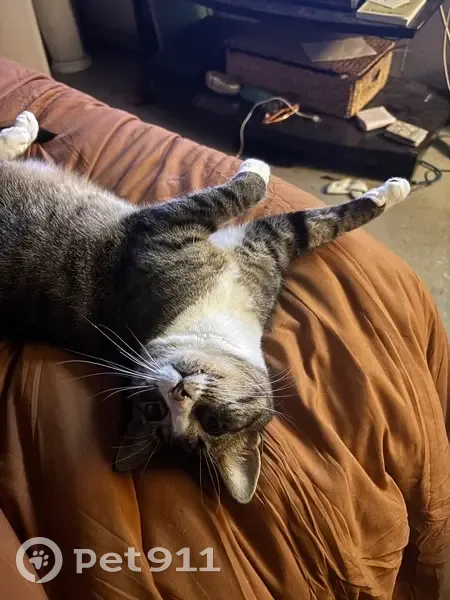 Tobi slipped out the door on 2/24/26 around noon and we weren’t able to get her back inside right away(she is stubborn and runs) She a black/gray/white tabby, she has a white almost triangle shape around her nose/mouth, a white chest and stomach, white “socks” on her feet and she has bright green eyes. A very small scar may also be visible on her nose.