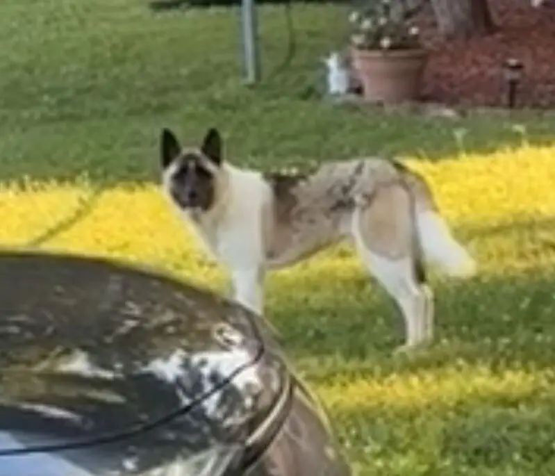 German Shephard, tan, black,. Missing since late night on July 4th due to fireworks. She jumped our fence. Has a red collar with white bones and an AL rabies tag.