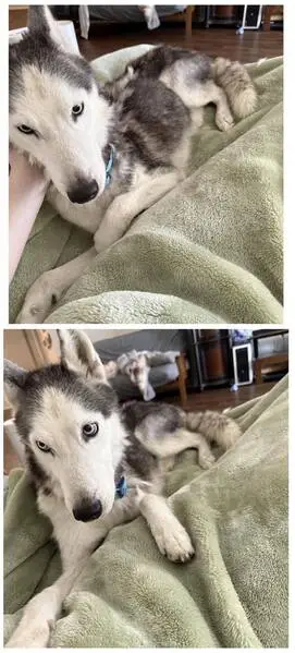 Timid, evasive, will not respond to me or whistling, is terrified of crates. We have several traps out she has came to one and then back right out of it and has not come to any since. She has a blue fi collar on her and a magenta color with a jailbreak husky rescue tag