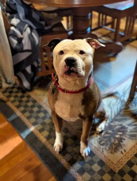 He has no collar, grey hair with some white on his chest, he is a pit bull but very friendly. Does not like other dogs but is good with children. He is approachable and will answer to Mr. Wrinkles or “ Hammie “ He is microchipped but the chip has NO info on it as it was never activated ( sadly ) we live near the fire house in Lenola and I’m sure he was either taken off the property or ran away.