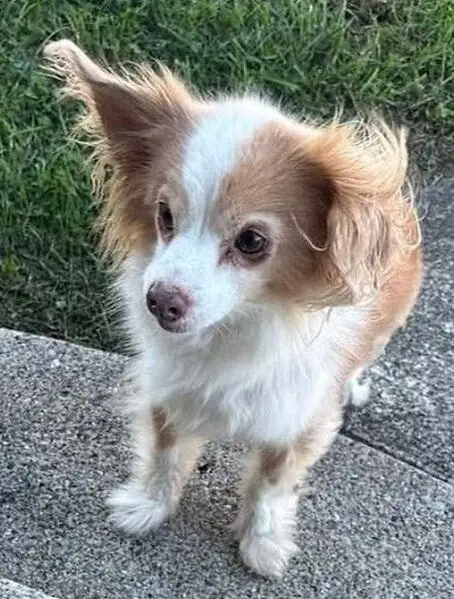 Jalapeño has a black and white coat withsome brown on the face. She is very tiny: she is a papillon weighing only 5 lbs. She wears a pink collar, part of it is a chain. There is a large black spot on her left side. Jalapeño also goes by Halli, as her nickname. She is VERY friendly, she is my diabetic alert dog. We lost her when we let her outside with our other dog to go to the bathroom and she never came back.