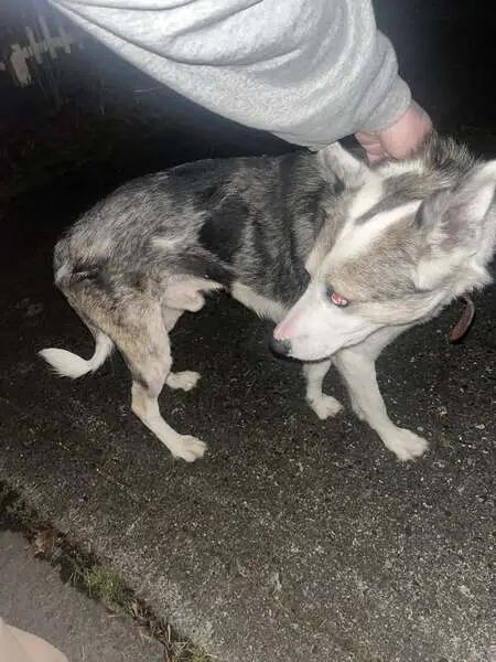 Hello, I am reaching out for help in finding my missing dog, Waldo, a Black/Tan/White husky dog, who escaped in the Webster, MA area around 12:30 pm today. Please do not chase him. Last seen on Granite St., Goddard St., and near McDonald's on Main St. Waldo may be skittish due to being struck by a vehicle while running down driveway into the street but is expected to be disoriented rather than injured. He is friendly and loves dogs. If spotted, please report to the dispatcher or call 508-982-7732 Thank you Black , white husky Red collar One blue eye one brown . Name is waldo . Friendly - loves crinkle chip noise Will come for treats