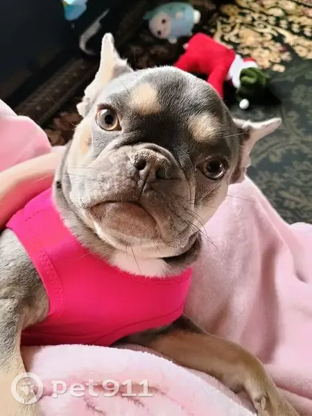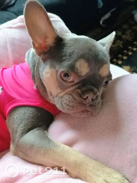 Laina is a Lilac and Tan French Bulldog she has a blueish gray coat with tan on her under side with white in the middle of her chest. Has a scar on her belly from being spayed. She was out side this morning using the bathroom I went in to get our youngest son to come outside and she was gone. We have been looking for her since 10a. M.