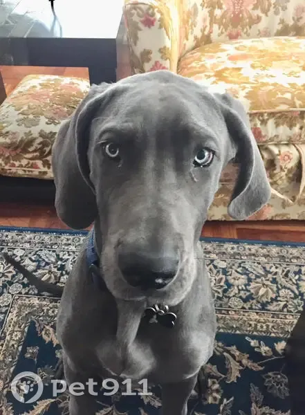 Gray Female Great Dane, Approximately 5 years old, Ran out of the home unexpectedly, CHLOE is wearing a collar with tags, and is chipped. Might be running with another big black long haired dog that lives here in the Holiday Creek neighborhood. She is friendly and should come when called by name.