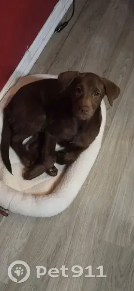 Chocolate lab in her 4 months stage had a purple collar with my information was taken out during a restroom break and was goner I feel someone just picked her up and stole her.