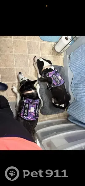 She is black and white and is wearing a purple vest that says best friend on it. She went missing tuesday when i was at work. She was found wednesday morning at 8am sleeping on someone’s porch on the corner of Dowling and Ault Rd and she ran. Rumor has it she was also spotted back on Reitz and Ault rode wednesday evening. Unsure of the time. She is very scared and skittish and gets increasingly nervous with people. I’m asking anyone who sees her to just keep eyes on her and contact me until i can get to her please. My number is 260.519.3314.