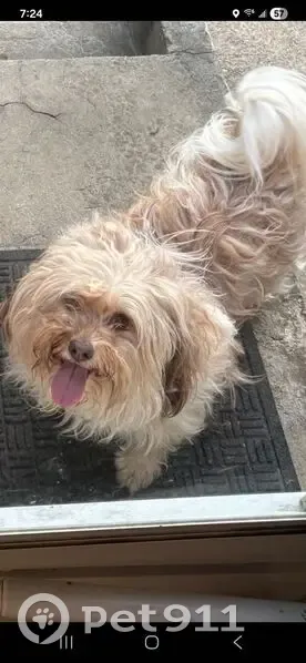 No collar , brown and white coat, medium sized dog fluffy and wavy coat, brown & hazelish eyes. Friendly personality, she jumped our fence and ran away and got lost.