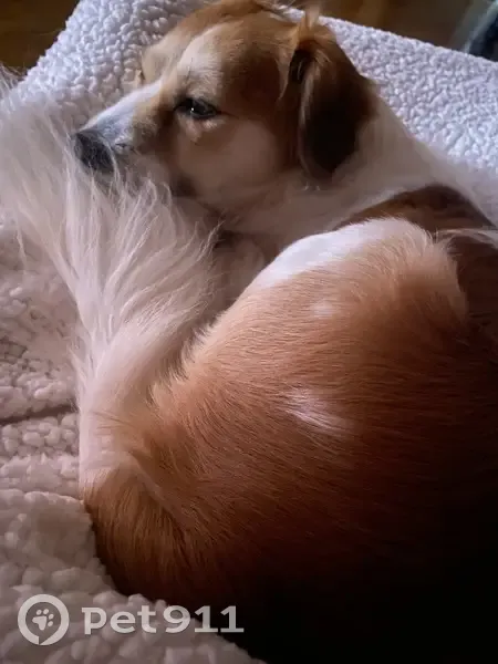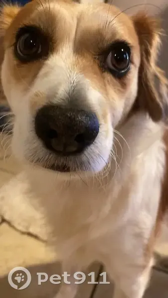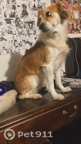 He got lost when a guy was fixing our house and didn’t remember to close the door. His fur is brown and white his tail is fluffy he is small/medium size. He does not have a collar. He is very friendly he does not bite unless if something is hurting him but does not bite hard