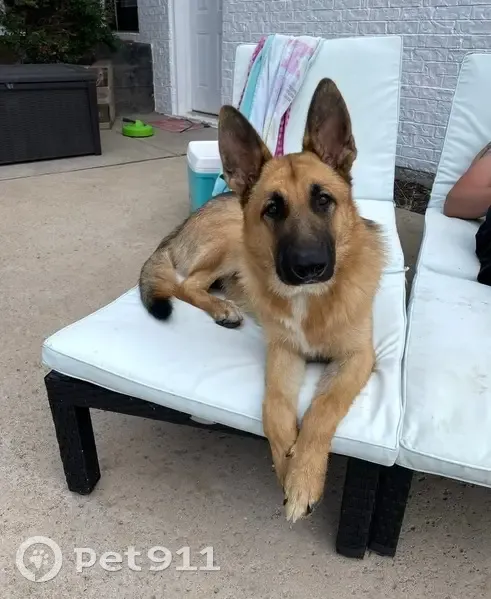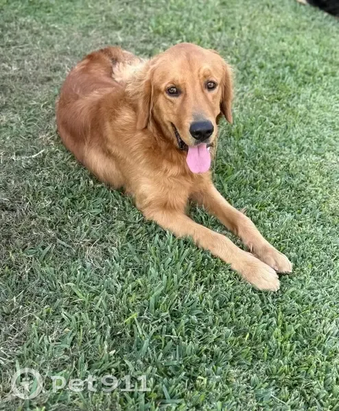Golden retriever named cosmo, german shepherd named diesel. They got out our front gate when it got opened, both are very friendly and loving and will come to food.