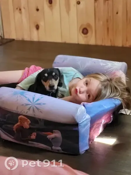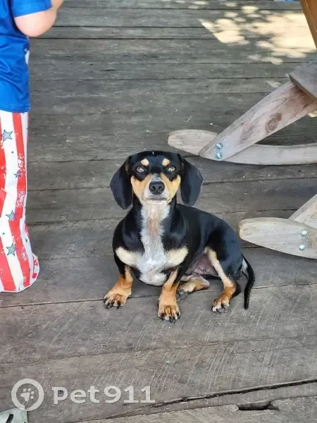 Black &tan White on nose and chest Around 12lb Shes a Dachshund She ran after 2 pigs abd we found them but never found her.. 423-331-7246 text or call if you find our baby girl