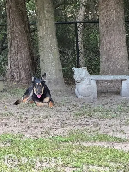 Black Tan German Shepard. 2 years old. Is very Skiddish and will likely run from you if you approach her.