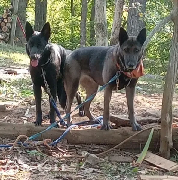 Large size Smoke colored German Shepard at time of disappearance was wearing a dark brown leather collar with blue tag, a dark green leather collar and an orange Halloween bandana Large size Black colored German Shepard at time of disappearance was wearing metal chain collar