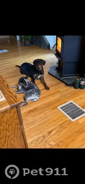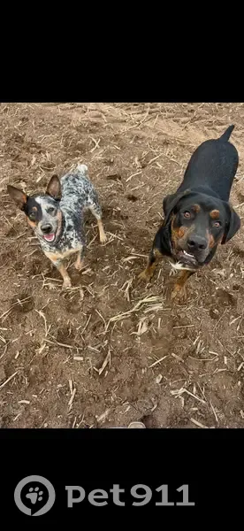He has hound in him and we think he just took off after a deer. He is out with his sister Hattie, she is a blue healer. They are somewhere in the woods. He’s a hefty dog but super nice. She is a smaller blue healer. They are super friendly. Might be a little skiddish only because they are lost.