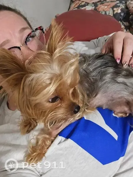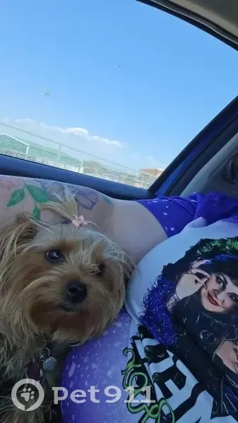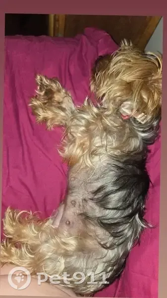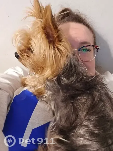 Tan, gray/silver. She hasn't been groomed due to having a litter of puppies. She has a C-section scar that is still healing, and has been spayed. She still has milk. She has a bow collar with pink bone address is accurate phone number isn't, I can be reached at 254-548-5777. She also has a AKC tag and a lil gem on collar.