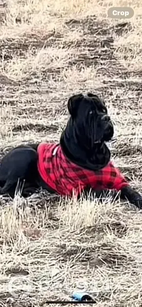 He is a black Cane Corso with golden eyes, a docked tail, and cropped ears. He went out on Monday night around 8 PM, which is normal for him, but he never returned.