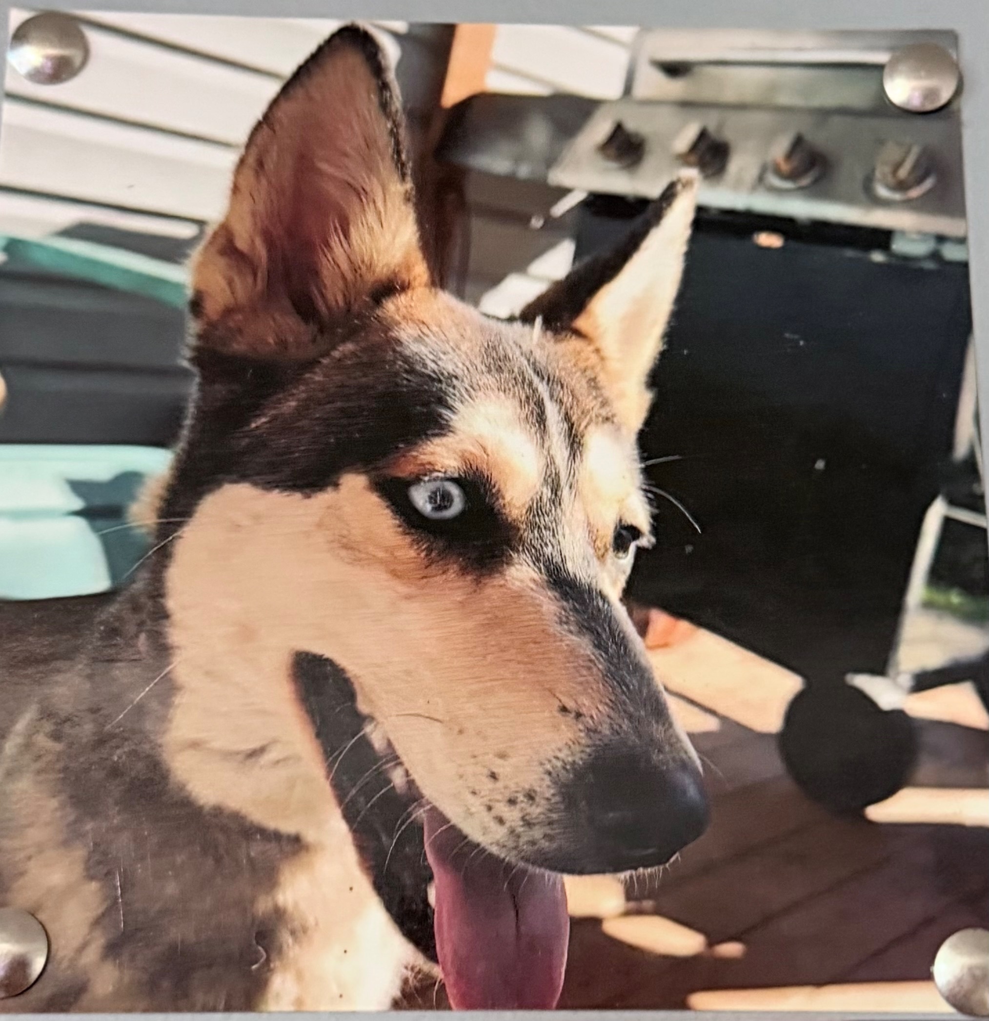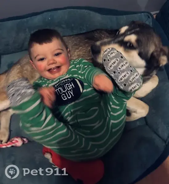 She is a husky mix She broke off her chain but some chain is still attached to her pink color she is wearing she has One blue eye and the other blue and brown she is medium size and will possibly shy away from strangers but she is harmless she is in heat that is what possibly contributed to her running off she will most likely be running with out Brazilian mastiff Dax and a little black dog