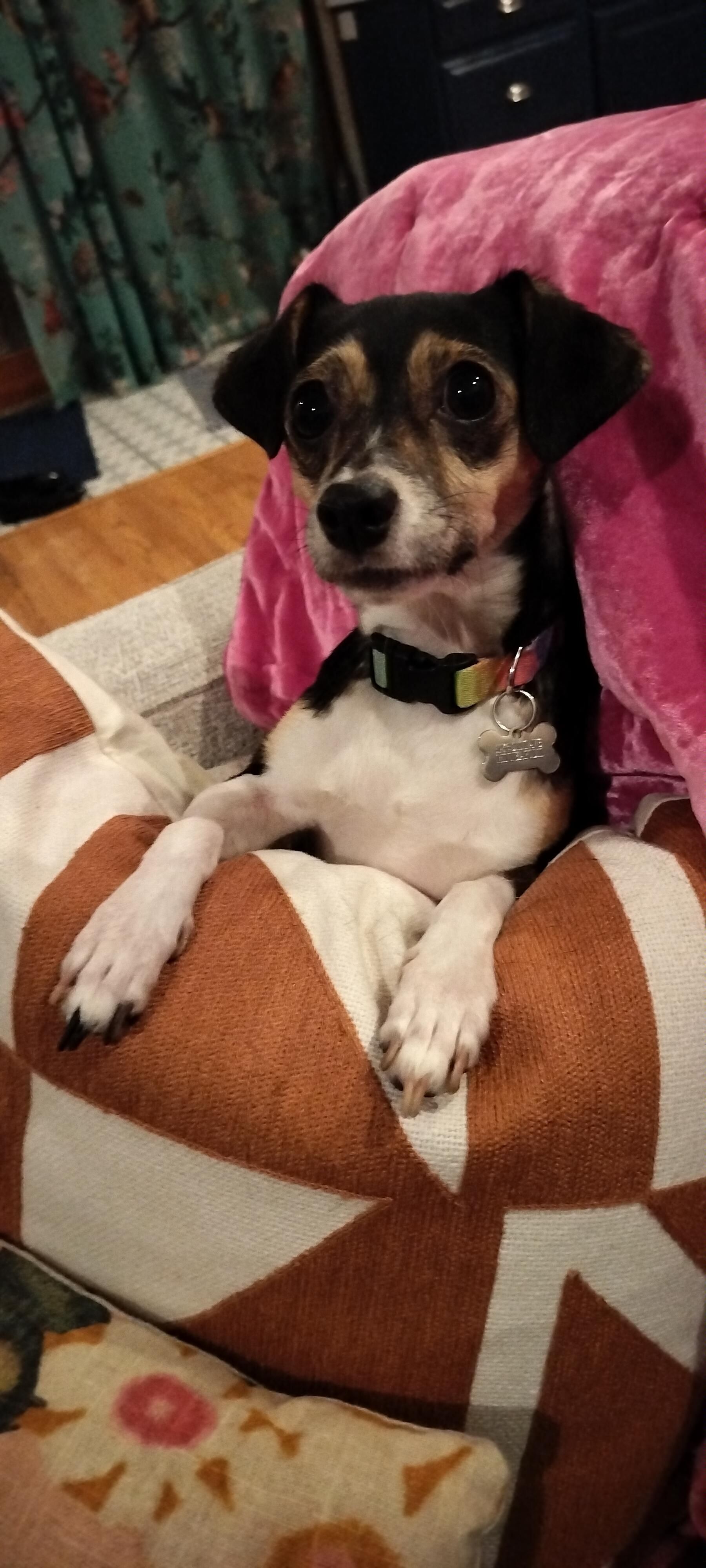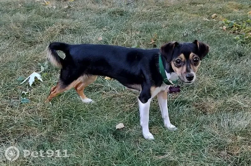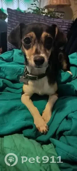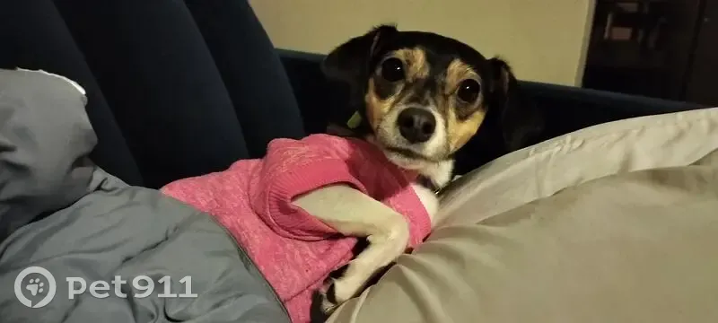 Iris is very scared and timid. She's a 12 pound Chihuahua terrier mix and she's tan, black and white. She's wearing a gray sweater and recently developed a cherry eye in her right eye. Do not chase or even say her name. Just call me ASAP!