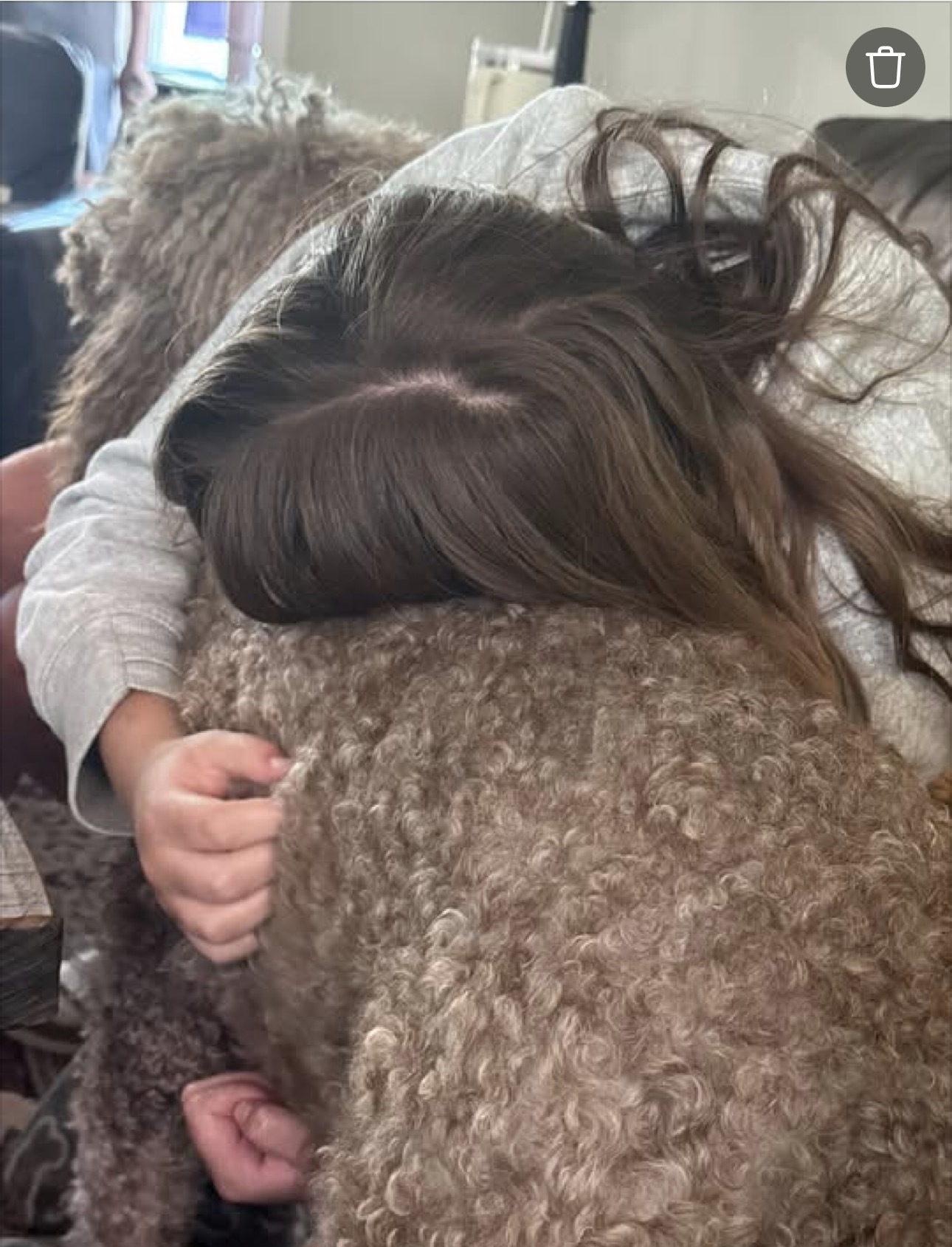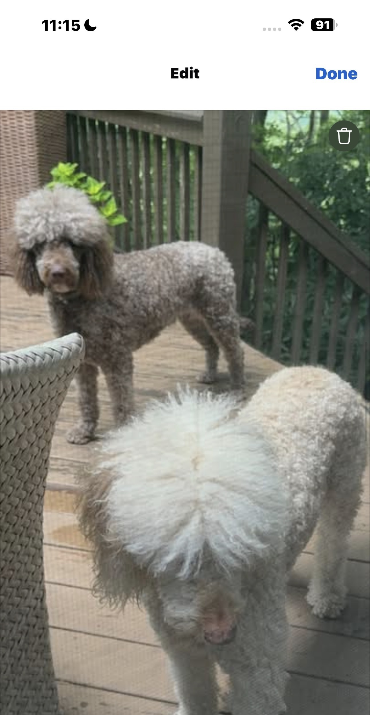 Name - Angus Breed - Goldendoodle Gender - Male, Fixed Color - Chocolate brown with white bib. Curly hair - more poodle like than retriever. Full head poof and ears Weight - 85-90 pounds solid stocky build not especially tall Collar - orange collar with tags and AirTag Chipped - yes Tends to be shy Not known to be a runner If you see Angus please call / text immediately and we will come. If he approaches or is in a contained area where you can keep him, that would be wonderful. He is very shy so it is better if you do not chase him as that can cause a reluctant dog to run. Thank you all for your continued prayers and words of encouragement! We feel truly blessed to be part of this community. Merry Christmas to you and yours from us and ours. Emma and Rob Maxwell Sophie and husband Rich, Ben, Meredith, Kate, Hattie the Goldendoodle, and Cats Shanks, Chirps, and Hugo