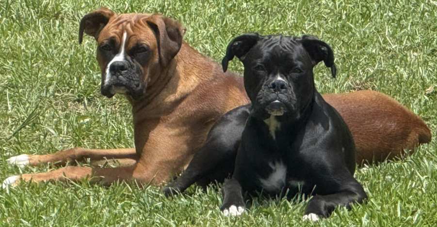 2 female boxers. 1 black, 1 fawn. Ran into IP woods approx 5pm Dec 26. 65 lbs. Very friendly. No collars or chips. $1000 REWARD for safe return. No questions asked