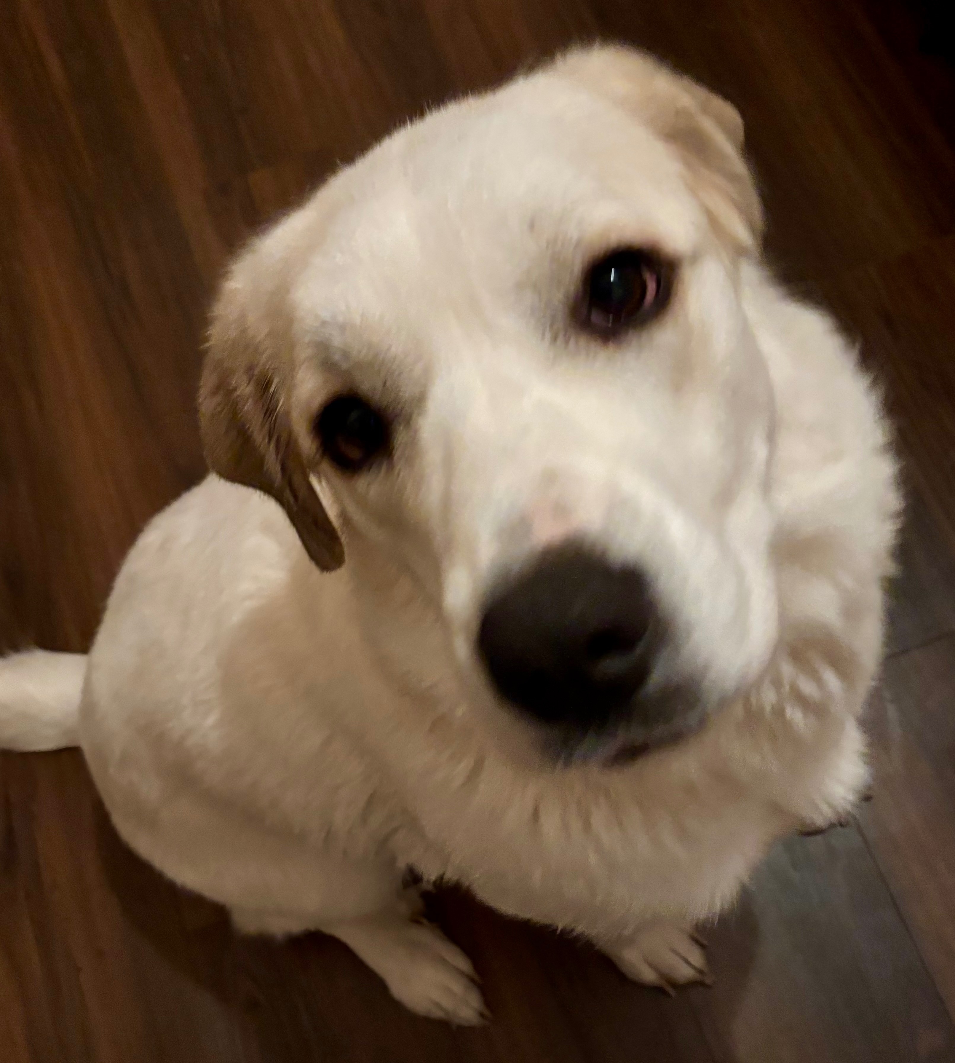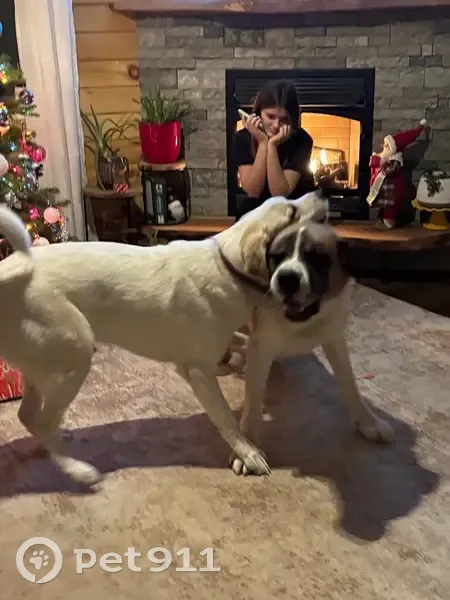 White, spayed female, Great Pyrenees mix. Friendly, indoor dog. Was wearing a purple/pink Kong collar when she left. Last seen with our male Saint Bernard mix.