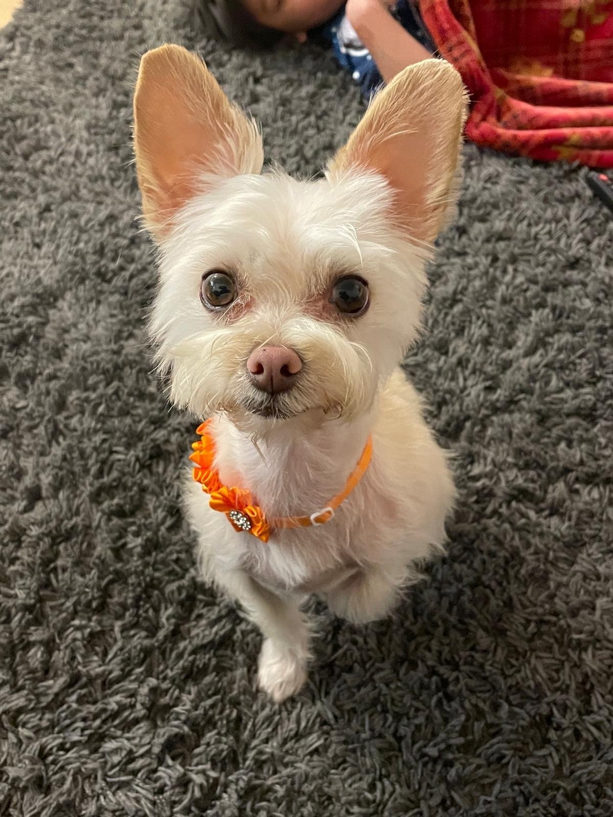 Precious got out on NYE. She is a white/tan looking yorkie/papillon mix. She is very timid and may try and run if approached. Please contact me if seen