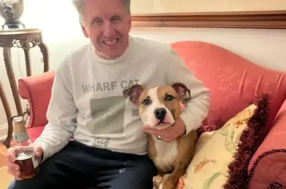 Brindle, 4 white paws, white marking on her snout and forehead. She ran out of the door suddenly, she’s skiddish sometimes so best not to approach. Shes an emotional support animal. Not spayed, no chip, possibly a purple collar on (my son changes them too much)
