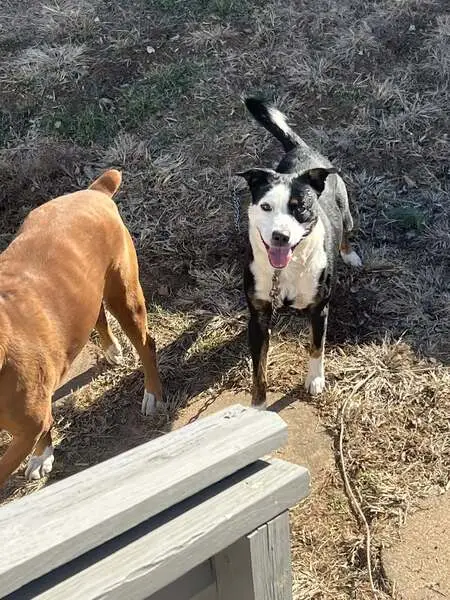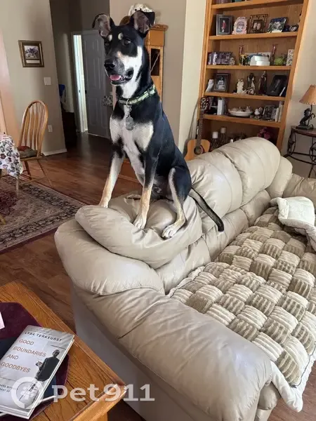Black/tan. Unique chest markings look like a cross with Angel wings. Chewed collar off so not wearing name tag. Has been chipped. Around 70 pounds. Friendly. Will not hurt you. I'm sure he is cold, hungry, and thirsty. He has been neutered. Look for the mark on his belly that shows neutering.