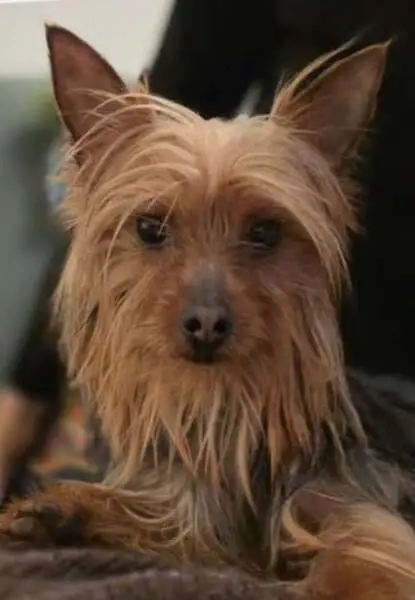 Brown a little black and gold like on his little head .. Like to jump in your lap. Got loss opening door ... Run fast like chew toys .. Peanut... We love u..