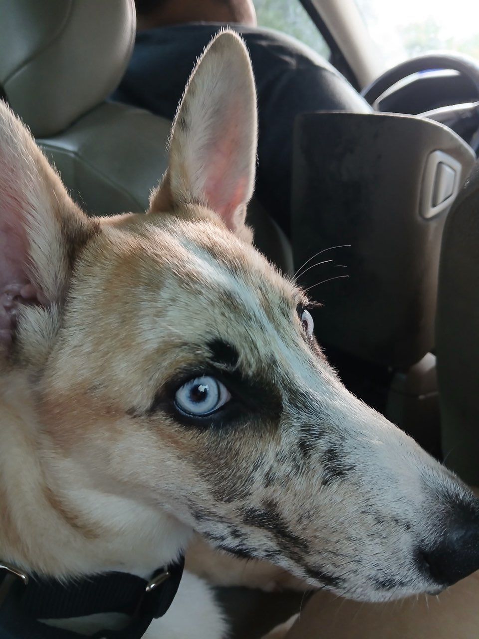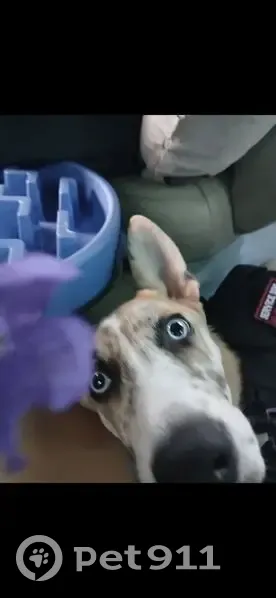 She's fawn/ tan Merle colored with white and has black on her face and bright blue eyes she escaped at might through gate in a 15 to 30 min window and we immediately went out searching for her but no luck at all she's very skiddish and might not come to people she's still in training and is my service dog I'm very worried about her especially having been outside all night