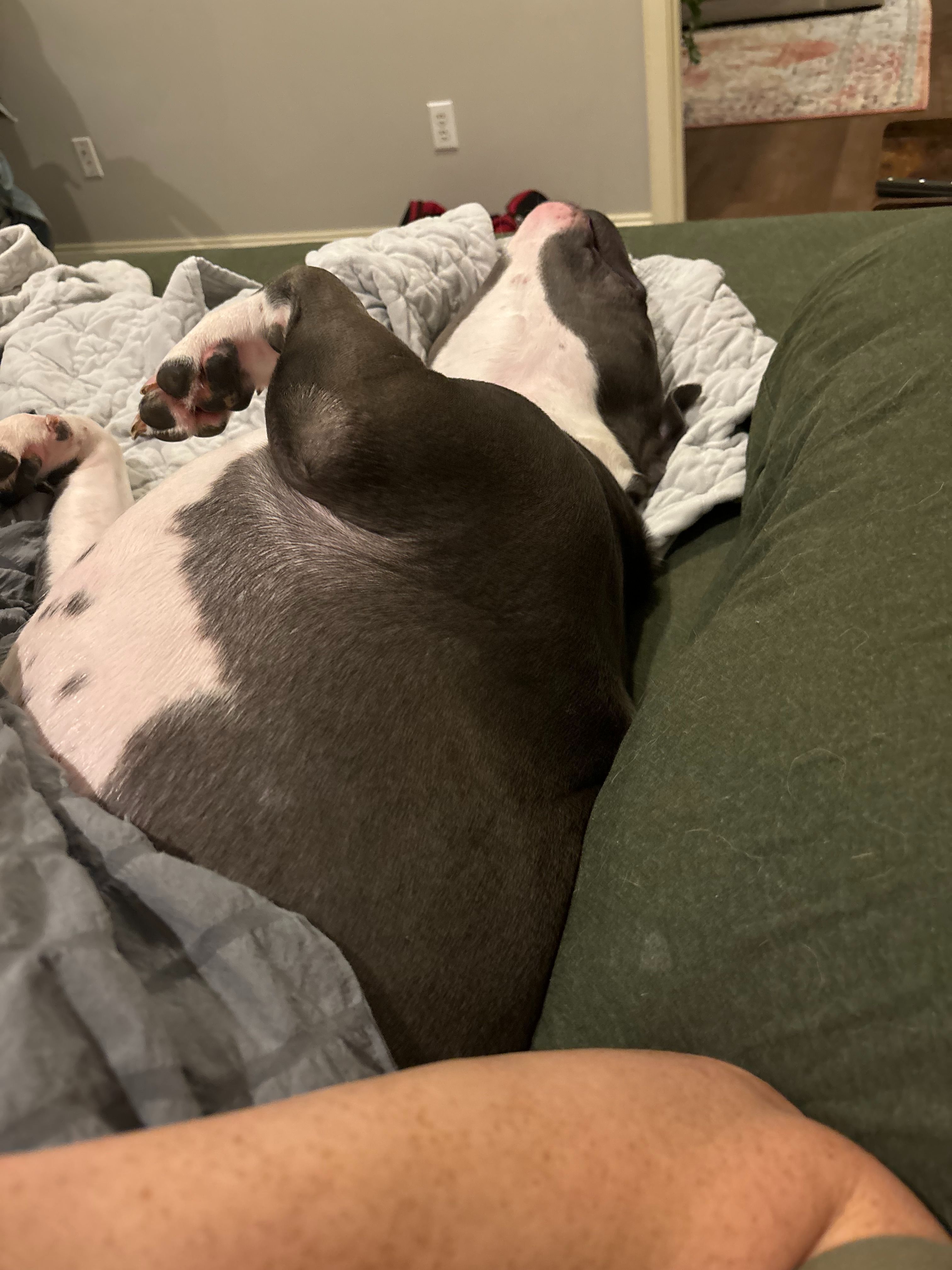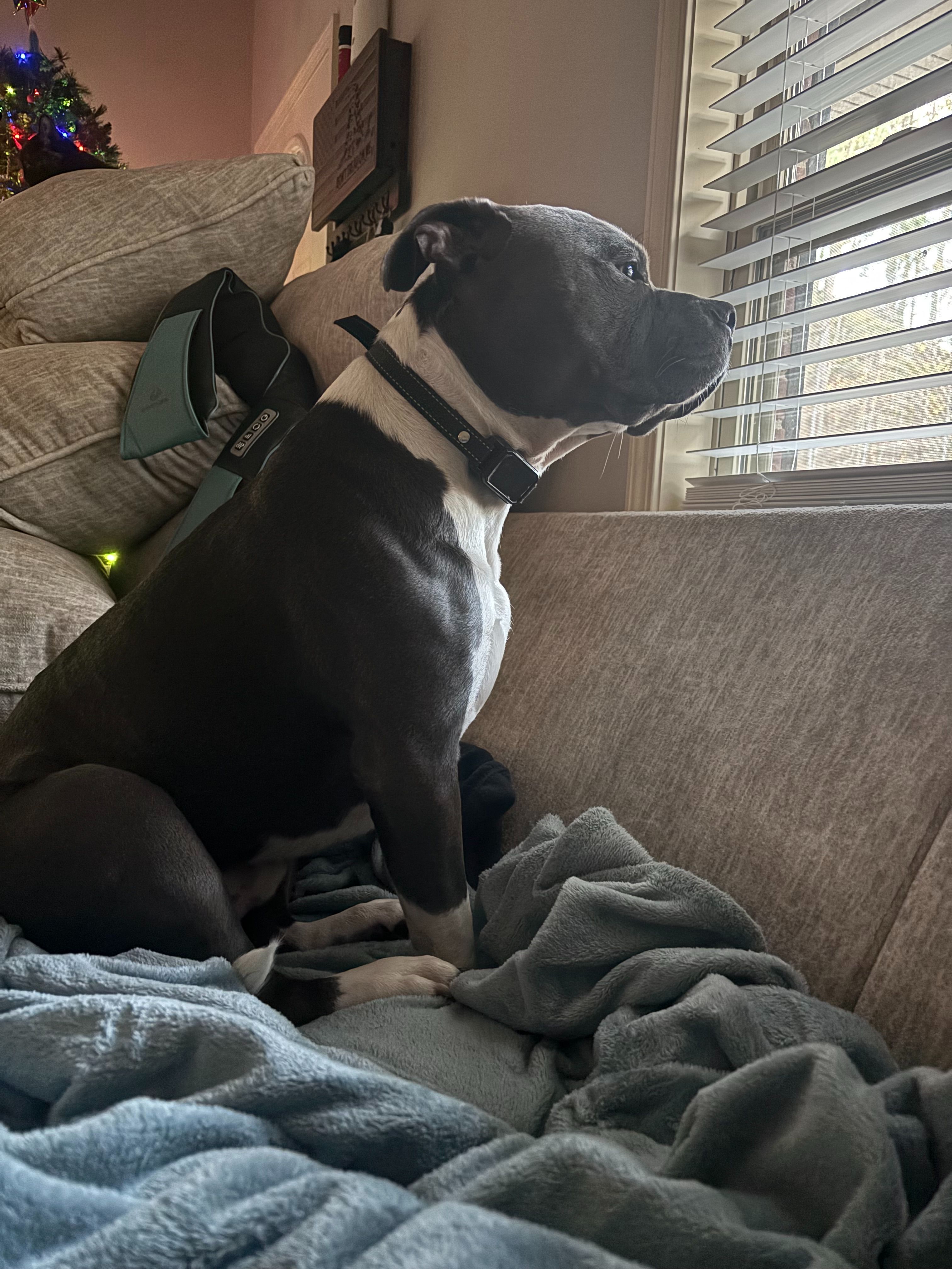 Maui is a grey-and-white Pitbull (he has a tiny white spot on his back and was wearing a black electric collar). He is very friendly and loving. We had let him and our other dog out for their morning routine, around 7:30 am on 1/24/26. After about 15 minutes, we went outside to bring them in. Our other dog came back, Maui did not. Last seen in our yard.