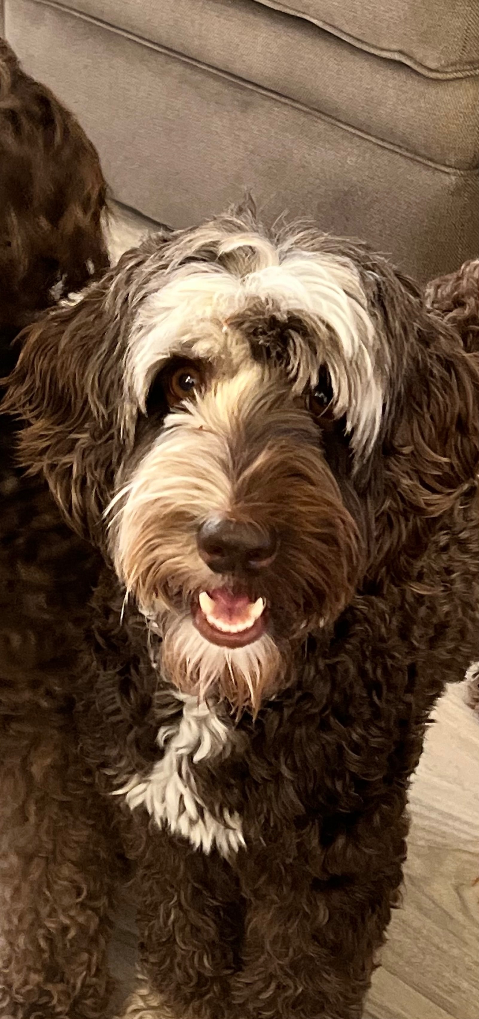 Lady is a 3 year old black/brown and white labradoodle. She wandered off on 1/27 in the morning and was spotted on 1/28 near 770 and Ralph Joyce. She is wearing a red collar with her name and my phone number sewn in. Please help bring her home.