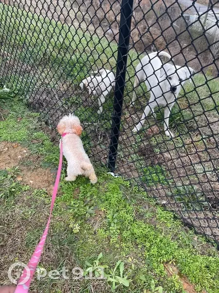 Looking for my missing mini poodle last seen behind Texaco in verbena she white with curly hair and her ears are orange on the tips please contact Robert at 6012871238