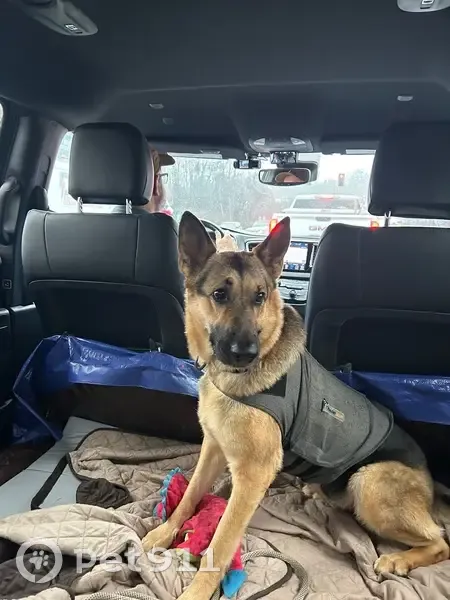 Black and Brown German Shepherd Ellie pulled out of her collar and ran. She is very anxious and afraid of cars. Please turn the car off and call her. She jumps tight in.