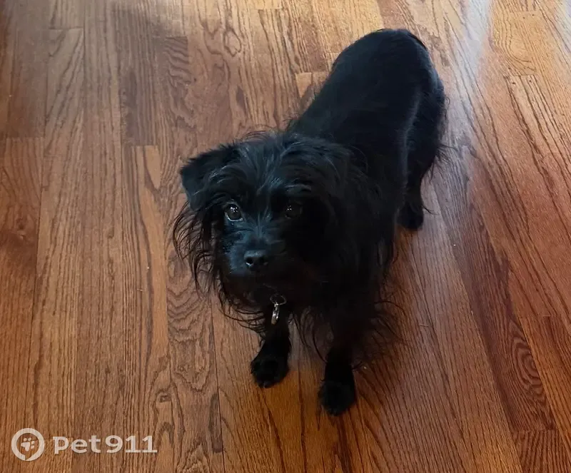 She is a 15 lb black terrier mix. My wife fell and Bailey broke lose and ran. She has a pink harness and pink collar with id. She is very skittish around people and is sometime frightened by children. Do not chase. She is sweet girl but has to take her time to trust. My phone number is 407 242-6918