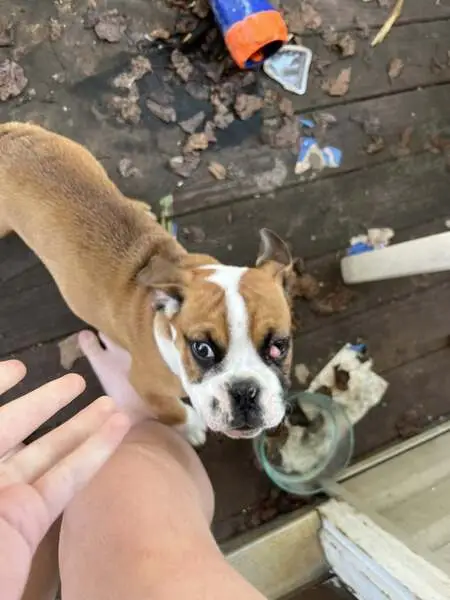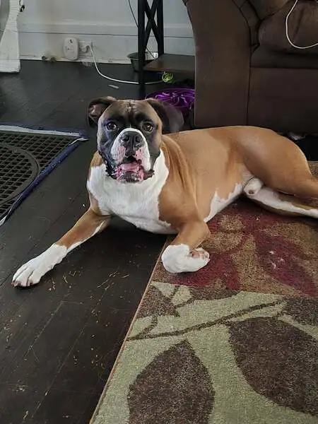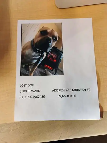 Appears to have run away during storm. Found near hwy 39. Short brown coat, with orange collar and black/tan rope leash. Looks like Chimay Call 919 605 9082 if your dog!