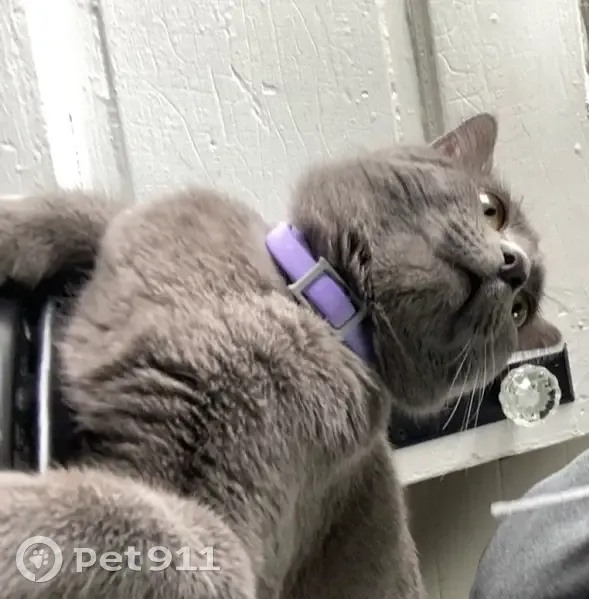 Lost Grey Cat with Purple Coll...