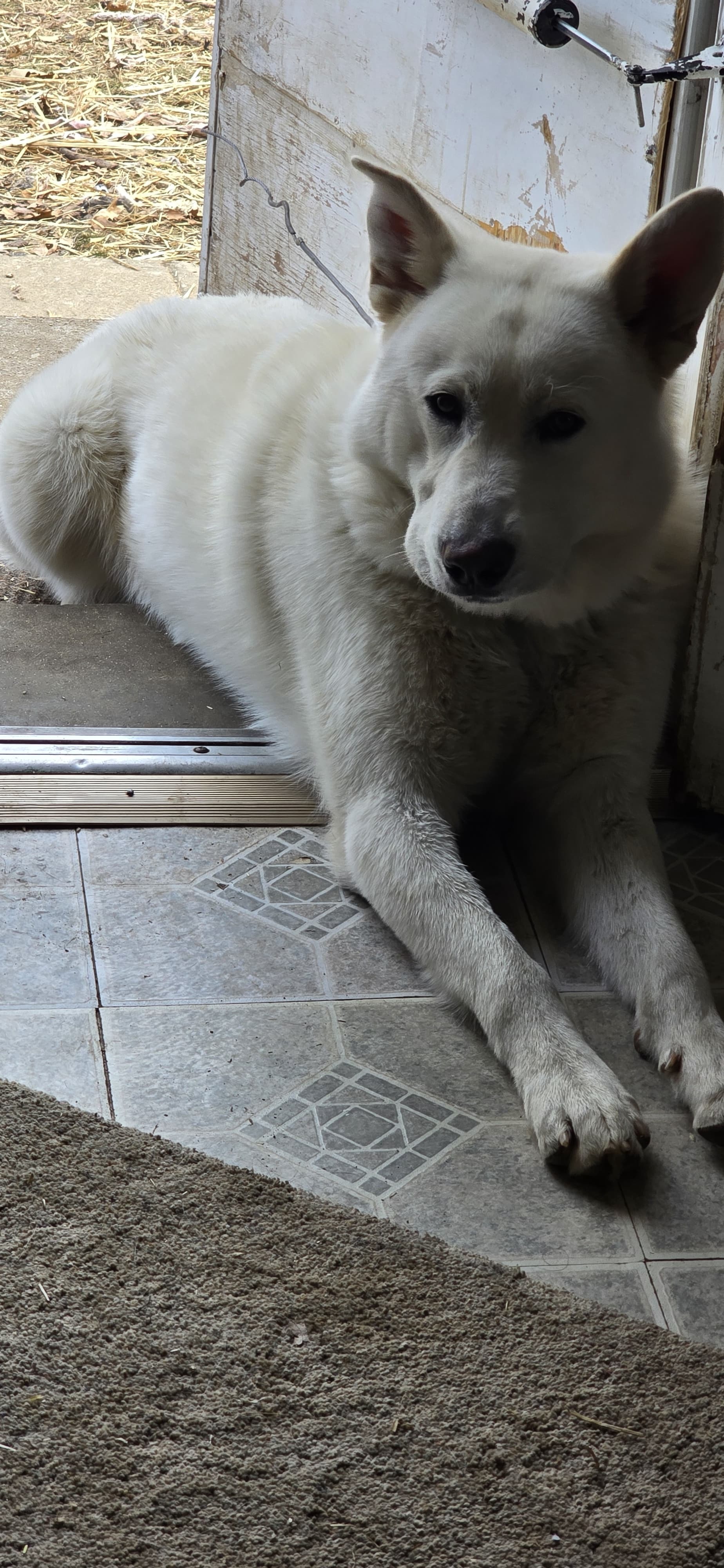 This is Tokyo, an adorable furry dog who is lost. He went missing on December 18th in the Poplar Level 40219 area. He's a large, all-white dog. He has white eyelashes and wears a tag on his collar with a phone number and his name.