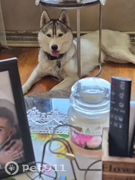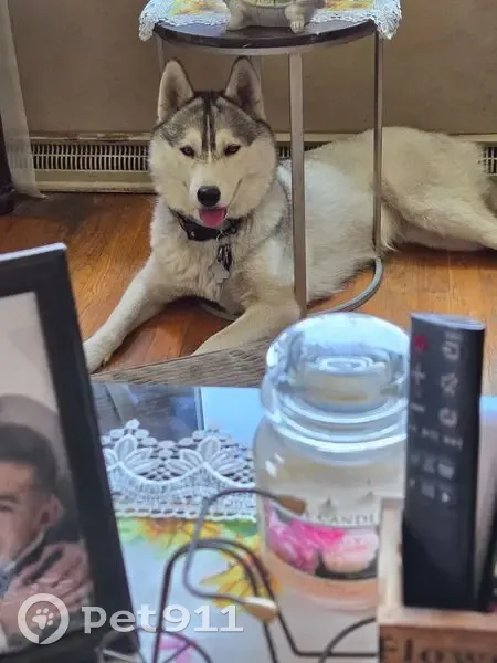 She is a 2 year old Siberian Husky, her coat is white gray and black. She has a black floral collar on with her tags on it. She also has a light blue Martingale collar and a tracking collar on. She ran out during the blizzard yesterday.
