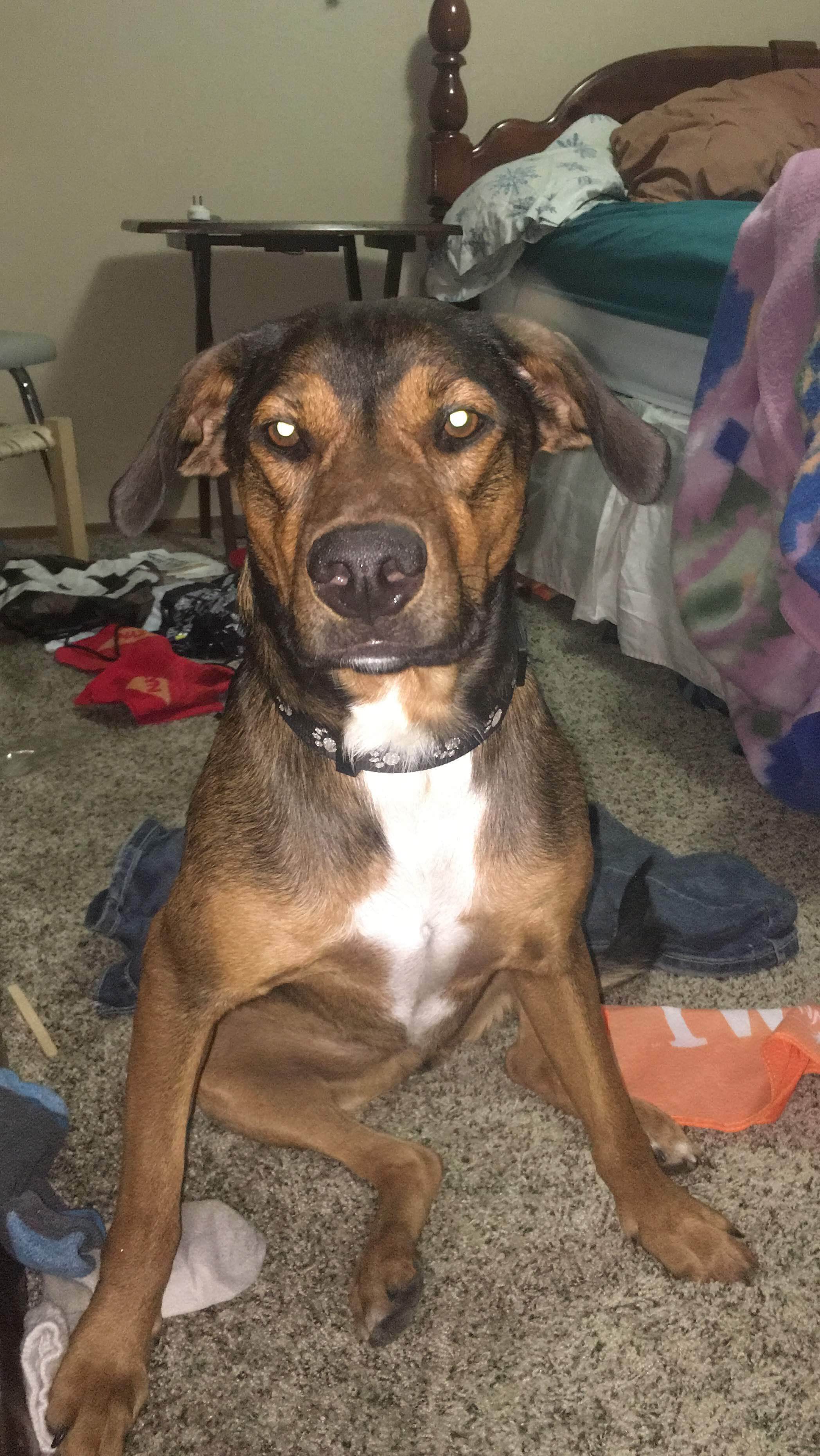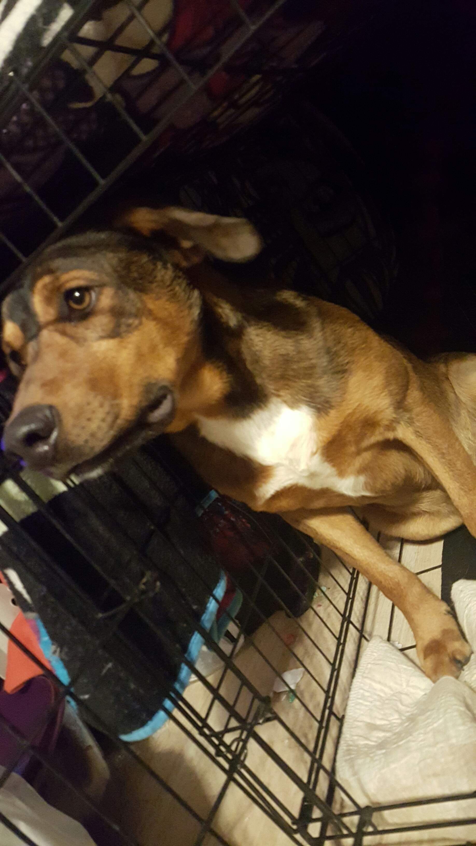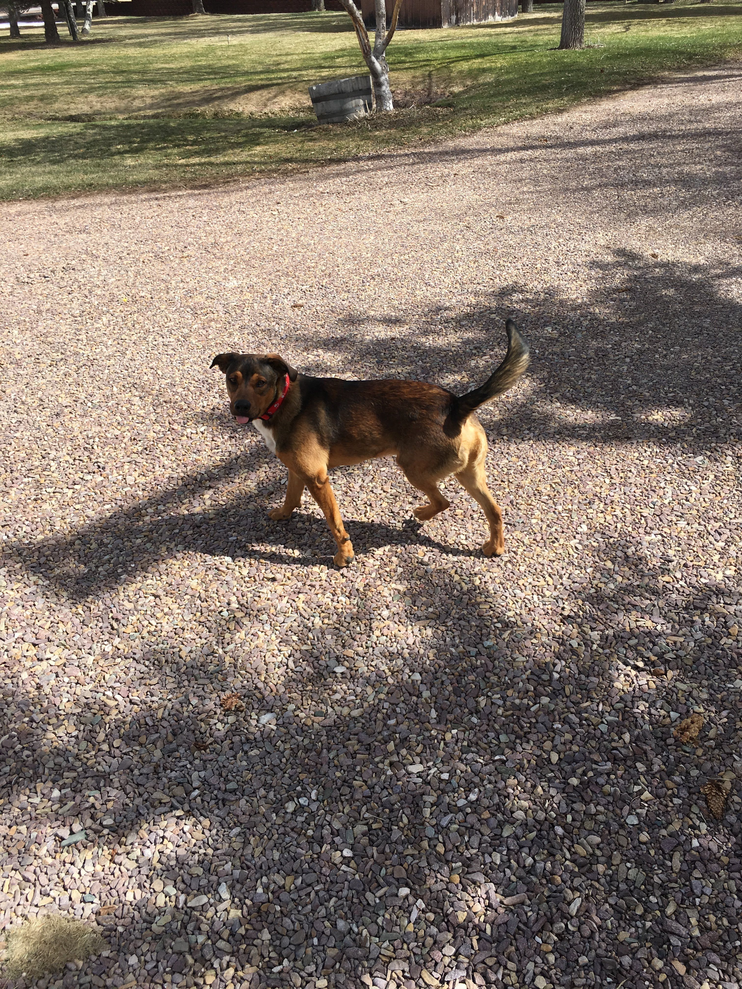 Jager is a German shepherd/ blue heeler mix with mainly brown, sort of brindle fur with black and white areas, noticeably a large white patch of fur on his chest. He is not intact, roughly 50lbs and has a notch out of one of his ears from a dog fight. He is extremely friendly and loves water. Our gate was bumped open and he took off from our yard while I was at work. The only info I ever got was someone saw him running about a mile and half east of my house. I live in a small town in Wyoming right off of Interstate 80. Jager was my best friend and I miss him dearly every day.