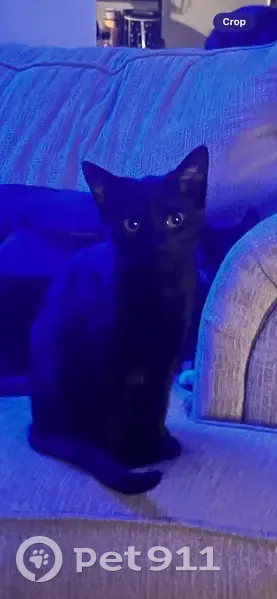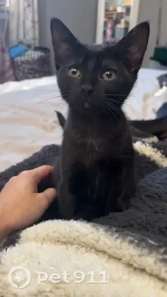 Black/brown fur with some white near her neck green/brown eyes she got out the back door , she is very tiny she is about 3/4 months she is not fixed and does not have a collar