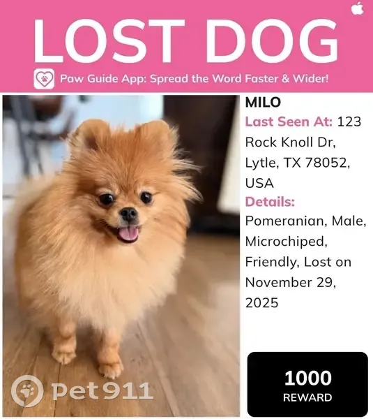 Missing dog Lytle, photo: Lost Pomeranian: Help Find Milo!