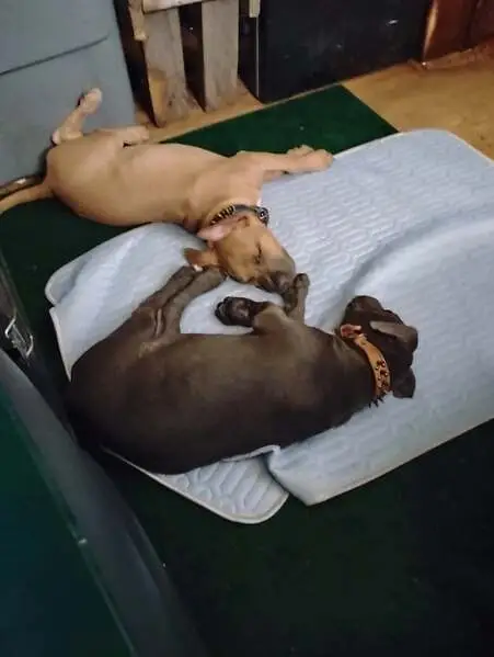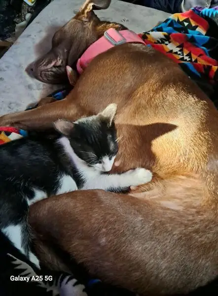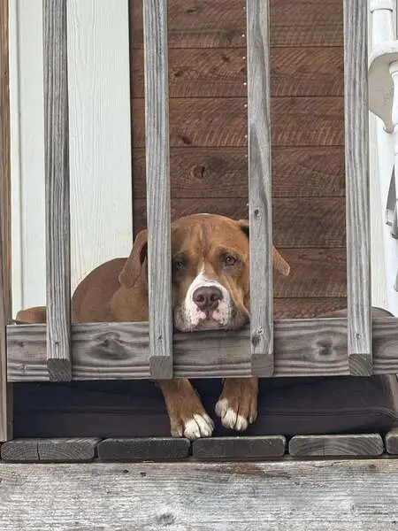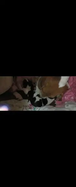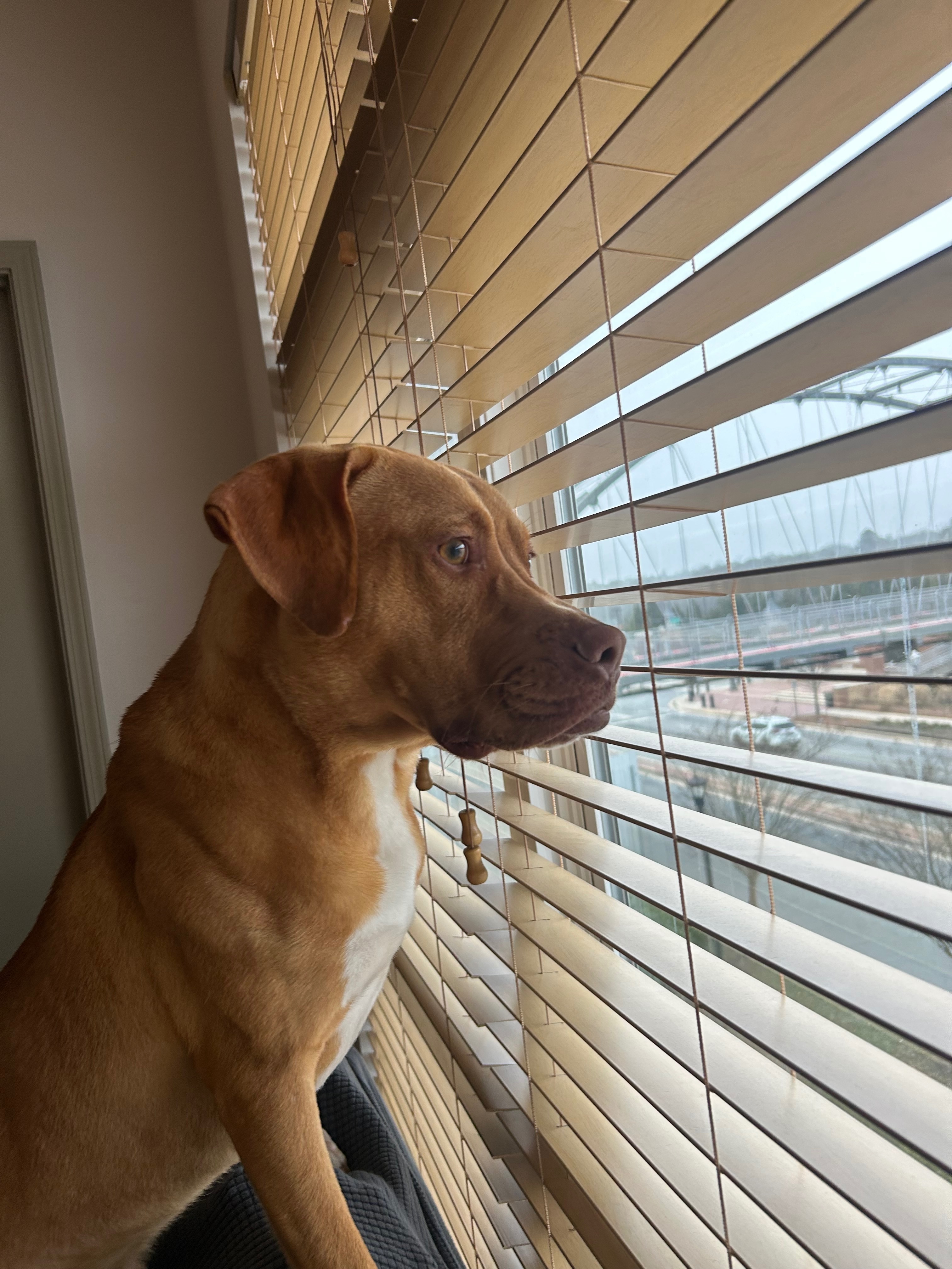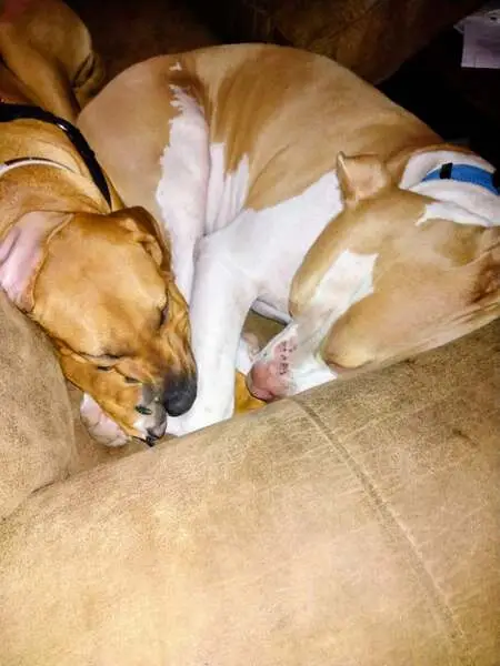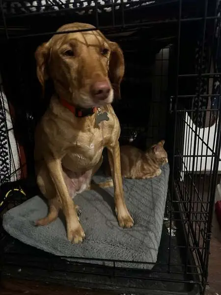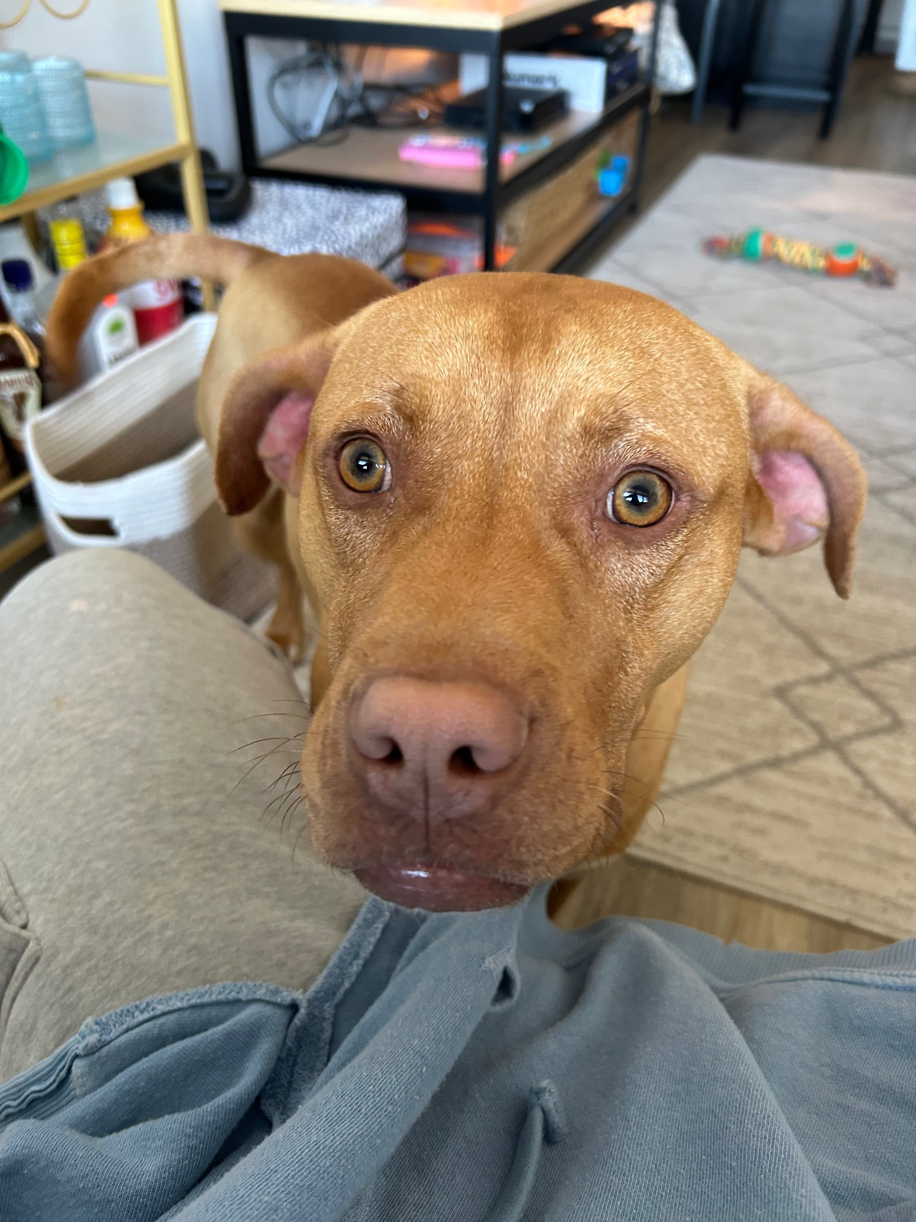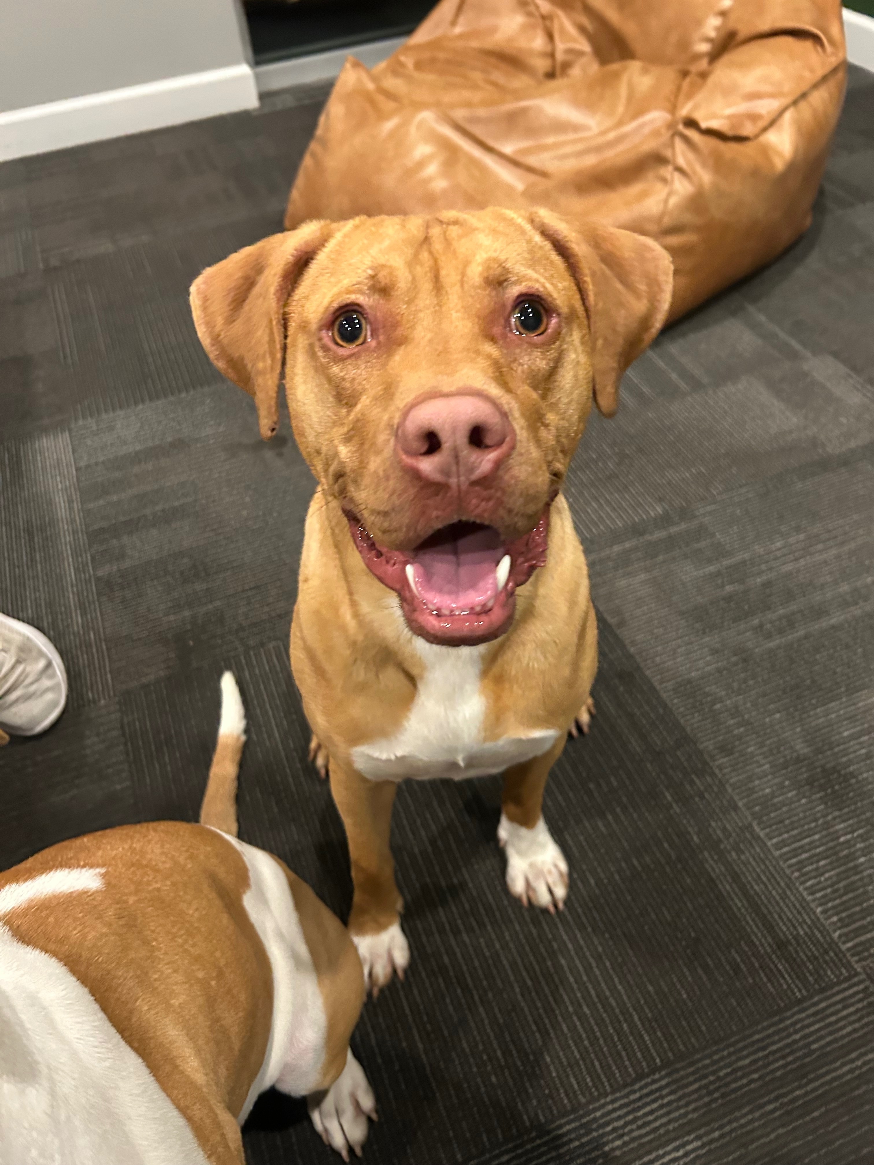 Tanish red looking lab pit mix. Very very friendly and was found with what I think is his mom. He loves people and loves to snuggle. Both of them are already potty trained and house trained.